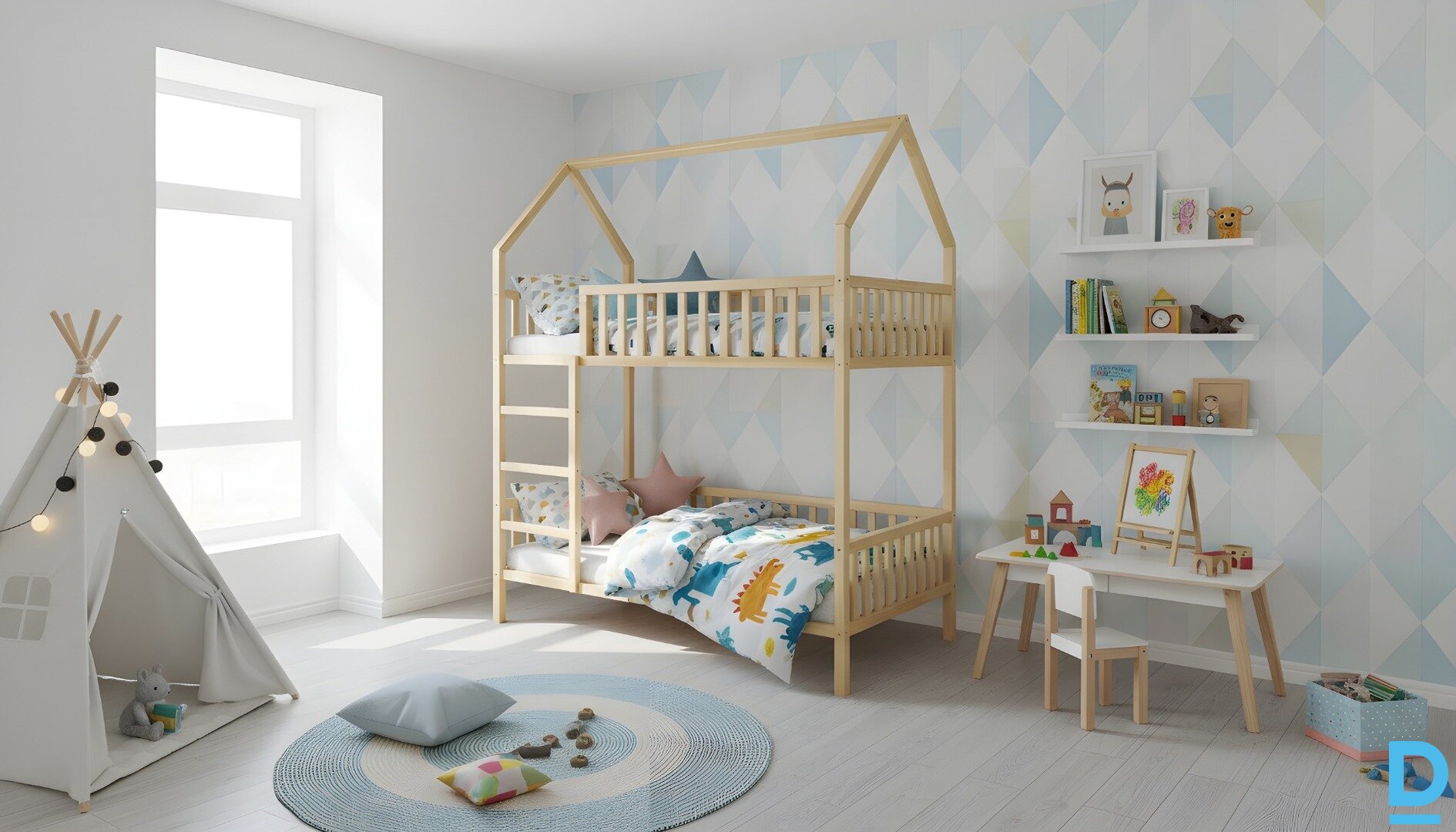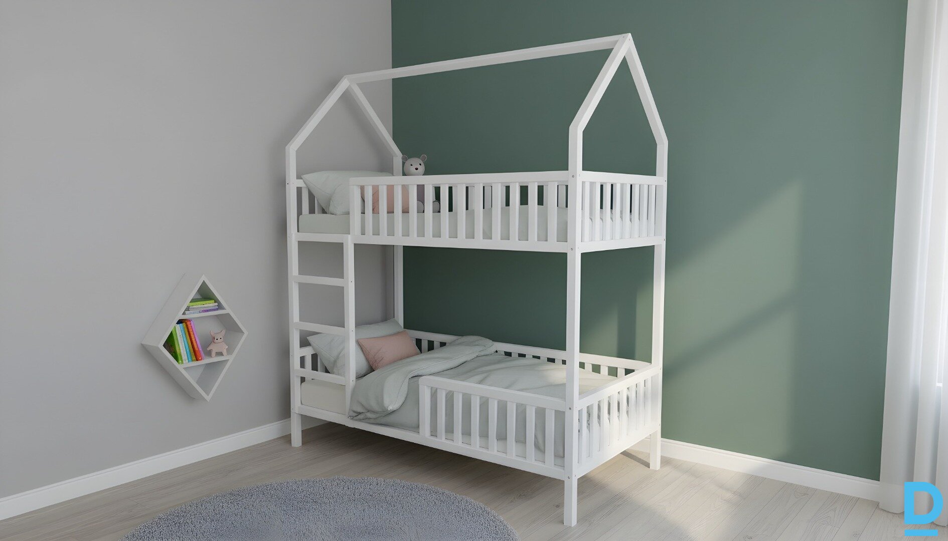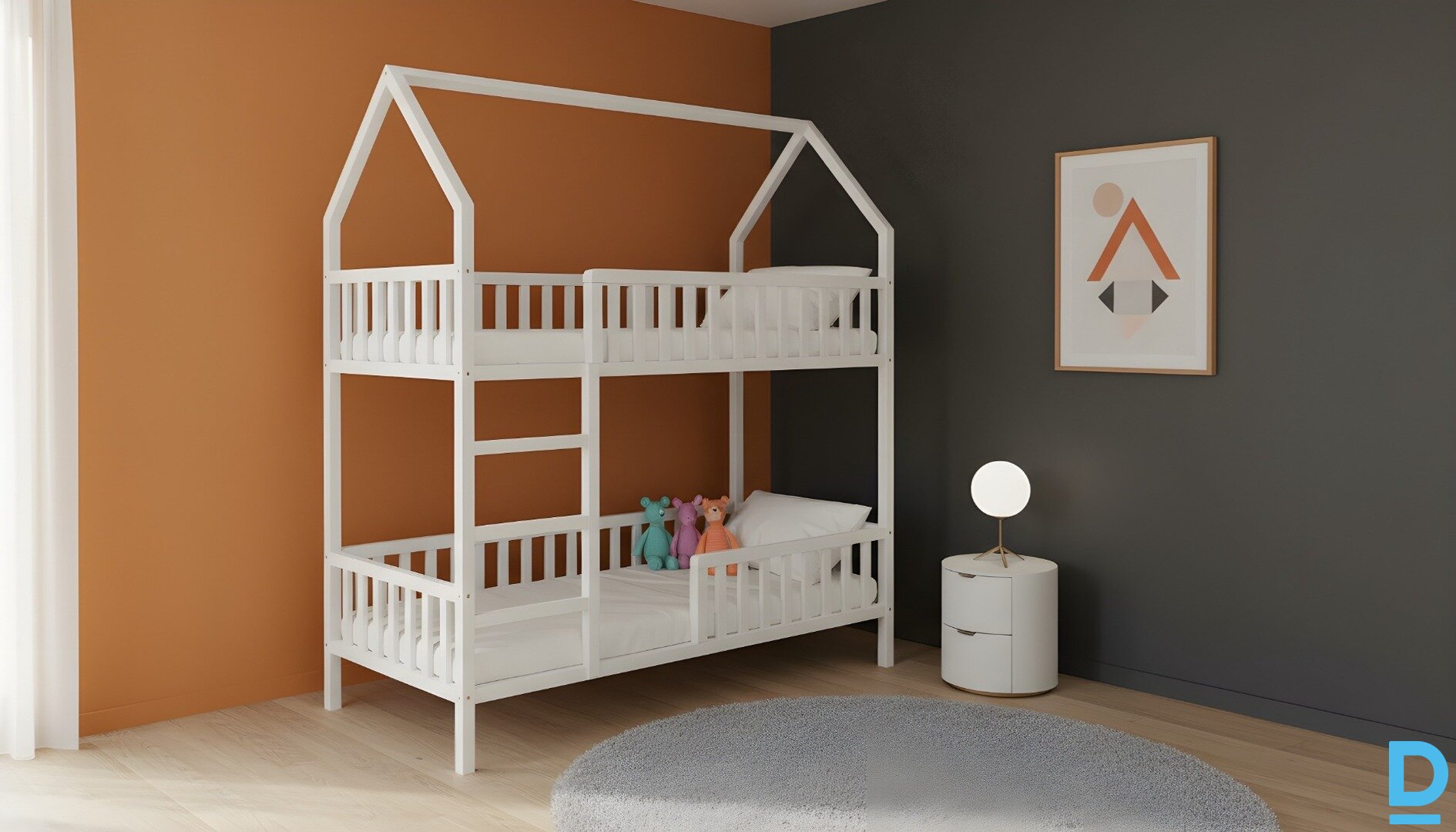Free delivery anywhere in Latvia with code VIP008 Bunk bed “Dream House” 90×180 cm – a favorite sleeping place for children I am selling a high-quality wooden bunk bed “Dream House” – an ideal solution for a children's room, which combines the functionality of a bedroom with the design of play elements. ? Main features Material: natural solid pine wood – stable, durable and safe for everyday use. Bed size: 90 × 180 cm – a spacious and comfortable place for both a child and a teenager. Two levels: upper and lower bed – perfect for two children or in combination with a play area below. Total height: approximately 235 cm – a sufficiently high-quality design that takes up minimal floor space. “House” design: especially attractive for children – creates a bright interior accent and a place for games. Safety: provides durable railings and stable ladder integration. Finish options: natural waxed wood, matte white, gray or a combination finish can be chosen - adaptable to the interior. Optional equipment: possible laundry box with wheels (optional). |