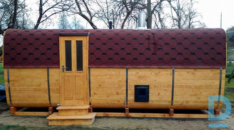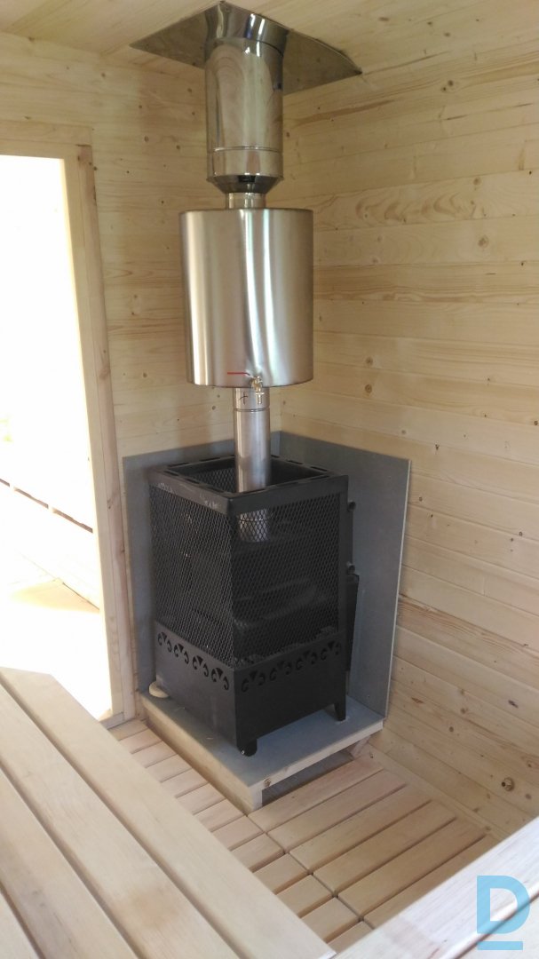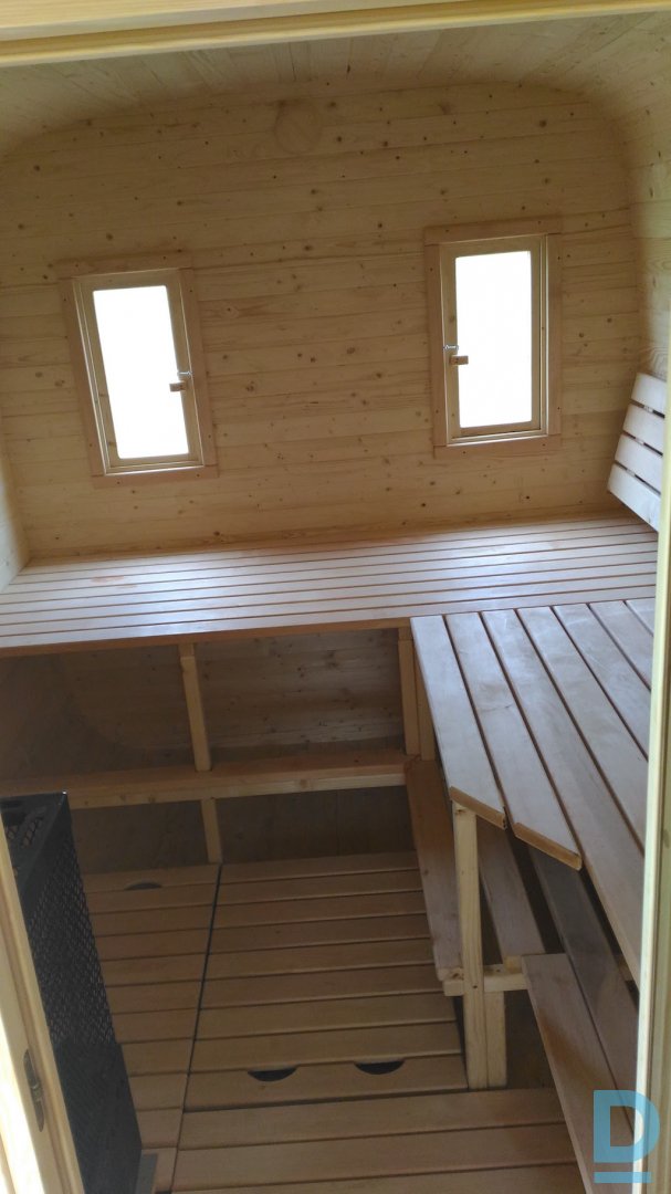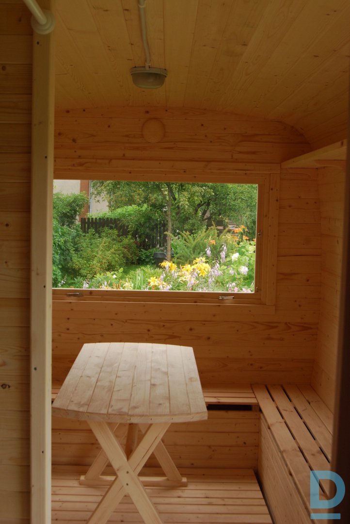 Pirts komplektācijā ietilpst: -malkas krāsns ar kurtuvi no ārpuses; -koka logi(verami) pērtuvē; -lielais veramais logs(1,30×0,70m) atpūtas telpā; -lāvas no melnalkšņa; -ūdens rezervuārs 25l uz dūmvada; -stikla durvis starp pērtuvi un dušas telpu; -arka starp atpūtas telpu un dušas telpu; -paceļami soli, ar mantu kasti atpūtas telpā; -galdiņš; -iebūvēts apgaismojums, ventilācija un elektroinstalācija; -slēdzamas ieejas durvis; -lievenis pie ieejas durvīm; -jumts bitumena šindelis *Cena norādīta bez PVN |