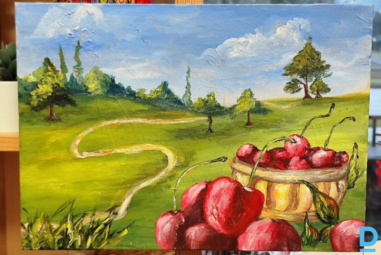 Акриловая картина с вишнями. Тёплая летняя атмосфера, естественные цвета и спокойный ритм. Работа вдохновлена природой и ощущением умиротворения. |