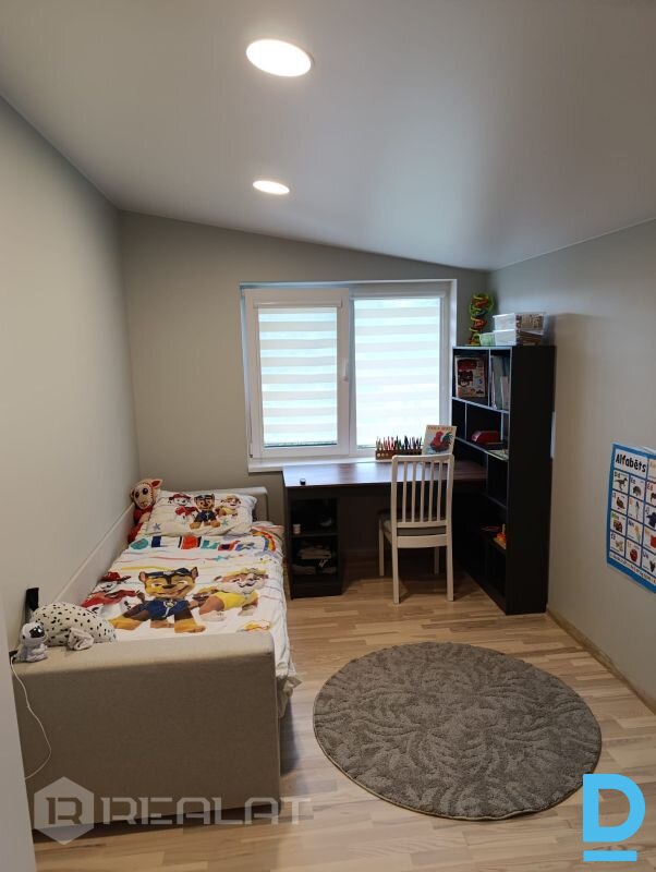 Tiek tirgota ģimenes māja. Māja ir nodota ekspluatācijā, nav nepieciešams kārtot nekādas papildus formalitātes. Ēka būvēta no 380mm gāzbetona, ir iespēja izveidot fasādes gala apdari pēc saviem ieskatiem. 1.stāvs- viesistaba, virtuve, sienas skapis, guļamistaba, WC (duša, tualete), garāža ar katla telpu. 2.stāvs- 2 guļamistabas, istaba (var izmantot kā atpūtas vai darba istabas platību), WC (vanna, tualete) Apkurināmā platība 150 kvadrātmetri, uzstādīts jaudīgs cietā kurināmā katls ar akumulācijas tvertni (1000 litri). Abos stāvos ir izveidota silto grīdu apkures sistēma, 1.stāvā papildus ir arī kamīns. Apkures sistēmai ir pievienots kombinētais boilers (ziemā ūdens tiek sagatavots no apkures sistēmas, vasarā no elektrības, lai nav lieki jākurina). Ūdens vajadzībām ir izveidots 64m urbums, kanalizācijai ir izveidota bioloģiskā notekūdeņu savākšanas sistēma. Elektrības pieslēgums 3F, 20A + uzstādīti saules paneļi 5.6kW, kas darbojas līdz 2029.gadam neto sistēmā. Automātiskie vārti gan iebrauktuvei, gan garāžai. Blakus mājai ir 35 kvadrātmetru pirts ēka, kuru var izmantot arī kā darba telpu, kā arī šķūnis darbarīku un citu sīkumu glabāšanai. Māja atrodas pilsētas teritorijā, tajā pašā laikā nomaļus no lielajām šosejām, kas dod klusumu. Tāpat galvenais ceļš nav caurbraucams, līdz ar to satiksme ir minimāla. Ielas galā atrodas mežs, otrā pusē ~300 metru no mājas ir upe ar sakārotu un tīru peldētavu. 5 minūšu gājienā ir autobusa pietura, 10 minūšu gājienā- veikals. Jautājumu gadījumā vai, lai sarunātu apskati droši sazinies! |