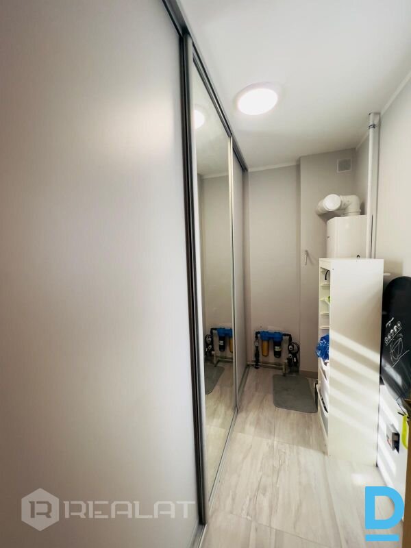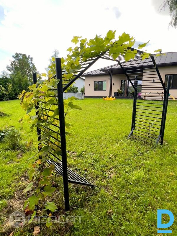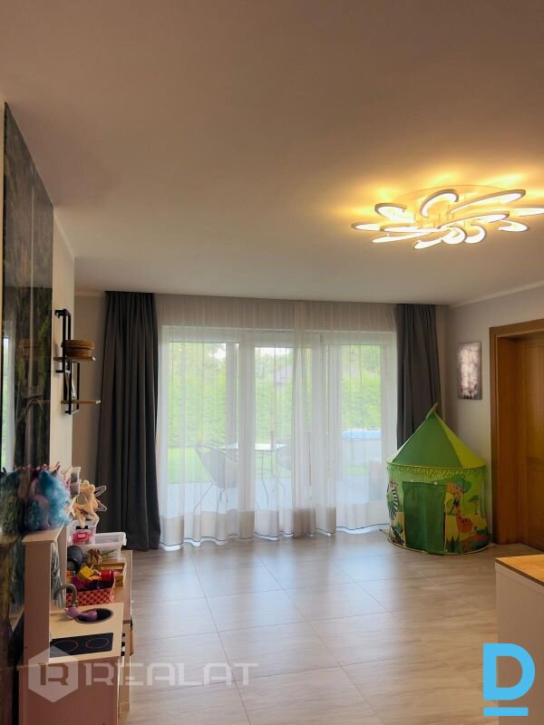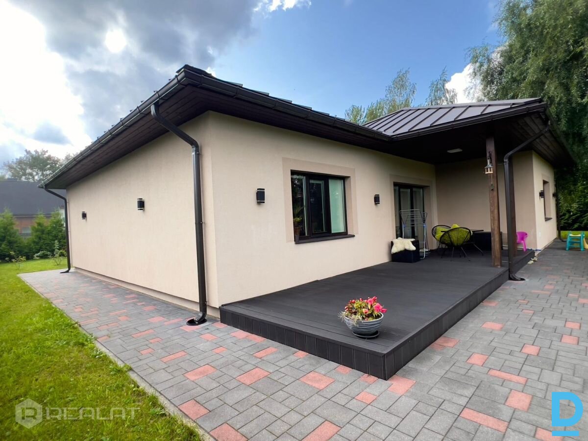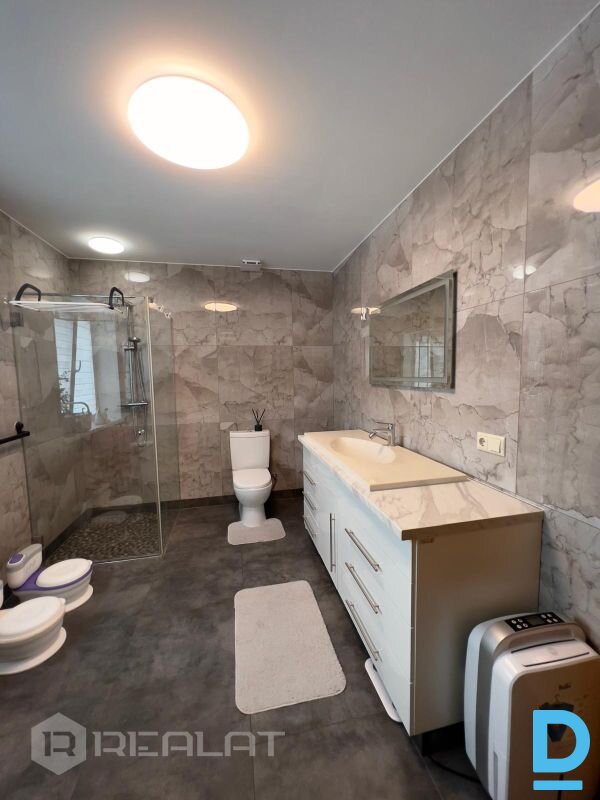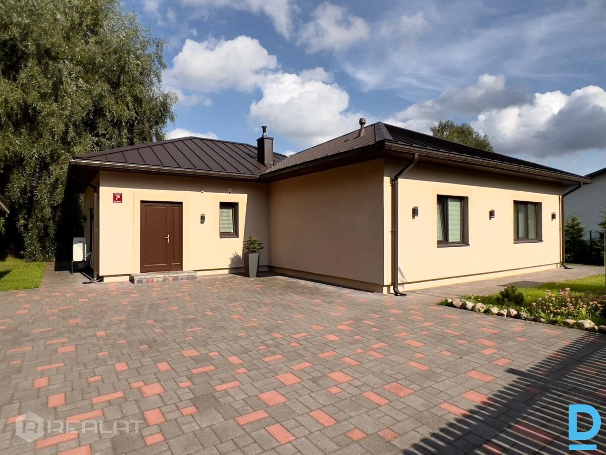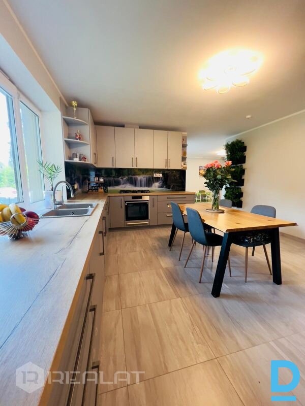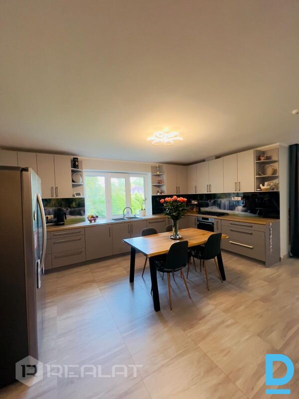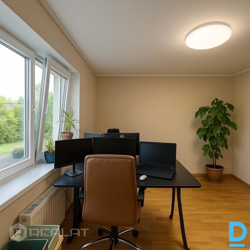 Pārdod ģimenes māju Jelgavā Tā ir viena stāva māja ar 129 m² platību, kas piemērota ģimenei, kura novērtē pārdomātu plānojumu un ērtības. Ēkai ir divas izolētas guļamistabas, gaiša viesistaba kopā ar virtuvi un ēdamzonu, plaša vannasistaba, kā arī tehniskā telpa ar lielu iebūvētu skapi. Virtuve ir aprīkota ar visu nepieciešamo sadzīvei, savukārt guļamistabā jau ierīkots iebūvētais skapis. Par komfortu rūpējas autonoma gāzes apkure – ar siltajām grīdām dzīvojamajās telpās un radiatoriem guļamistabās. Papildus uzstādīts kondicionieris–siltumsūknis, un temperatūru iespējams regulēt katrā telpā atsevišķi. Māja pieslēgta pilsētas ūdens un gāzes tīkliem, ir bio-kanalizācija, signalizācija un dūmu detektori. Zemes gabals 1326 m² ir sakopts un ērts ikdienai. Iebraukšanu nodrošina automātiskie vārti, teritorijā izbūvēti bruģēti celiņi, nojume divām automašīnām, saimniecības ēka un bērnu laukums. Pagalmā aug augļu koki un krūmi, bet augstās tūjas nodrošina privātumu. Mājas atrašanās vieta ir viena no priekšrocībām – ērta piekļuve Rīgai, netālu atrodas veikali un sabiedriskais transports. Apkārtne ir klusa un droša, radīta mierīgai ģimenes dzīvei. |