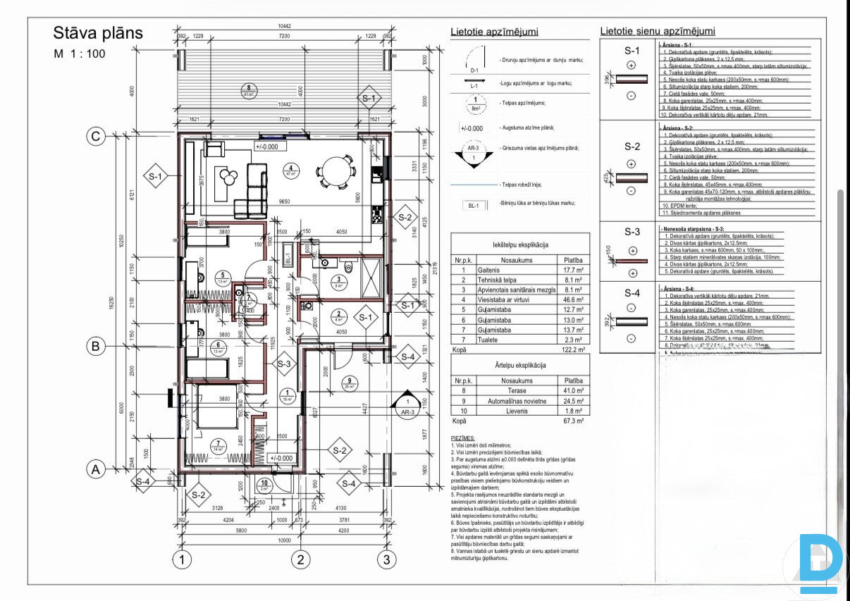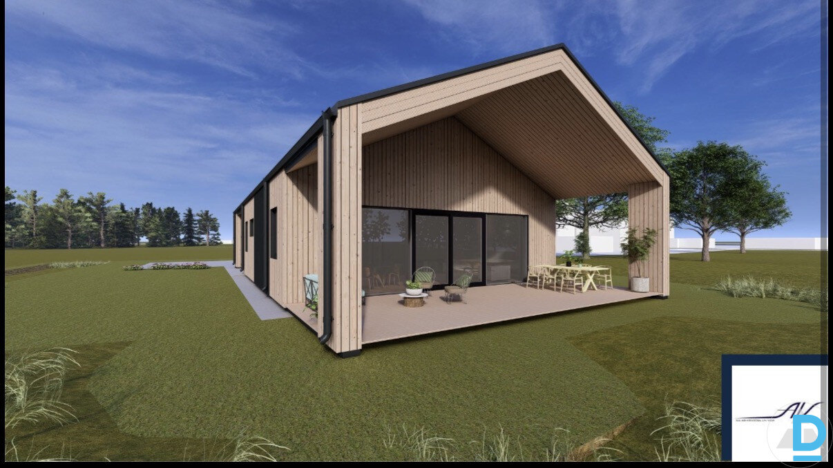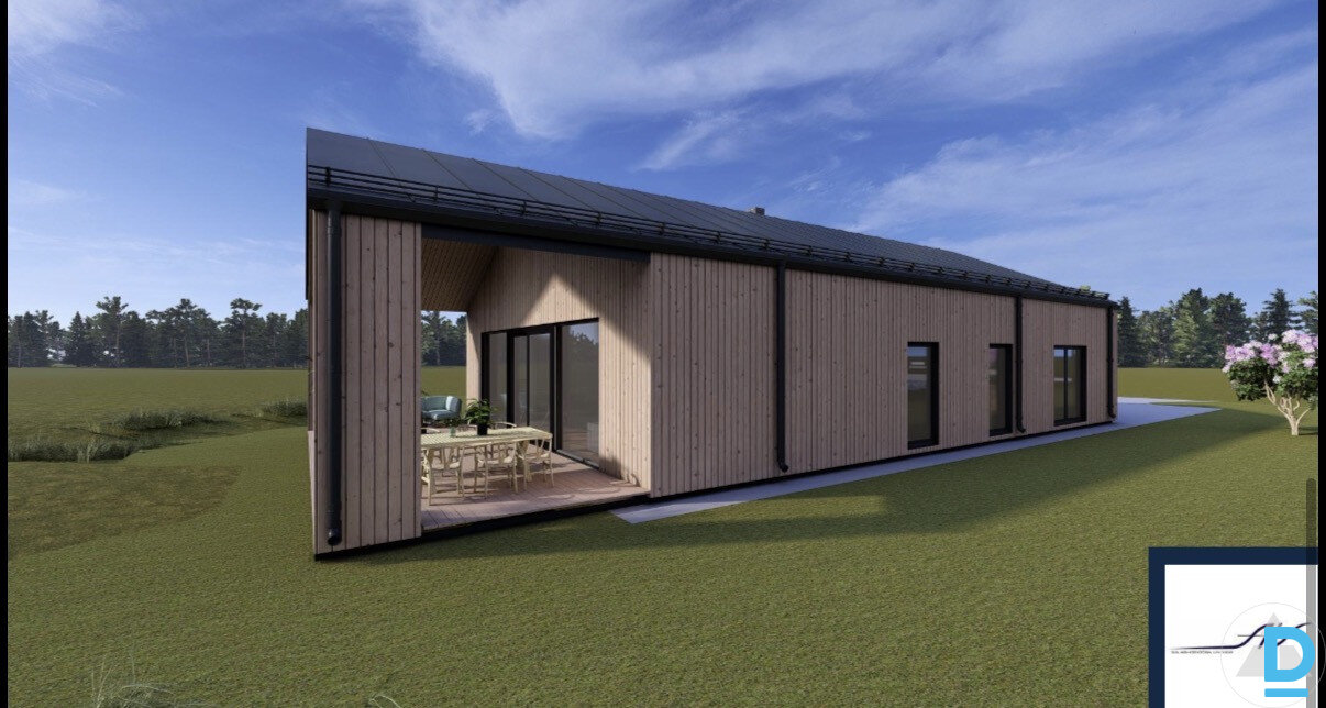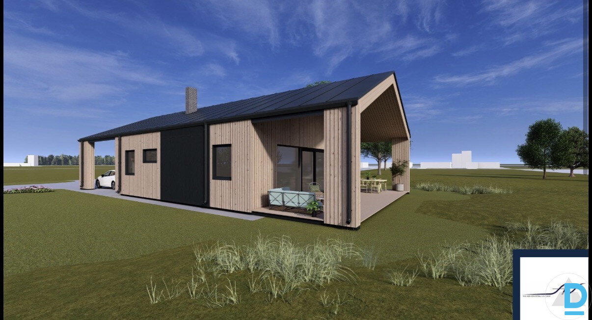 Iespējams saņemt būvatļauju un uzcelt māju no A-Z neuztraucoties par procesu līdz atslēgu saņemšanai un visu formalitāšu sakārtošanu, lai īpašumu nodotu ekspluotācijā. PAR MĀJAS PROJEKTU: + iekštelpu kopējā platība 122.2m2 + ārtelpu kopējā platība 67.3m2 + ēkas kopējā platība 189.5m2 Projektā ir koka karkasa māja ar plātņveida pamatiem, metāla jumta serumu |