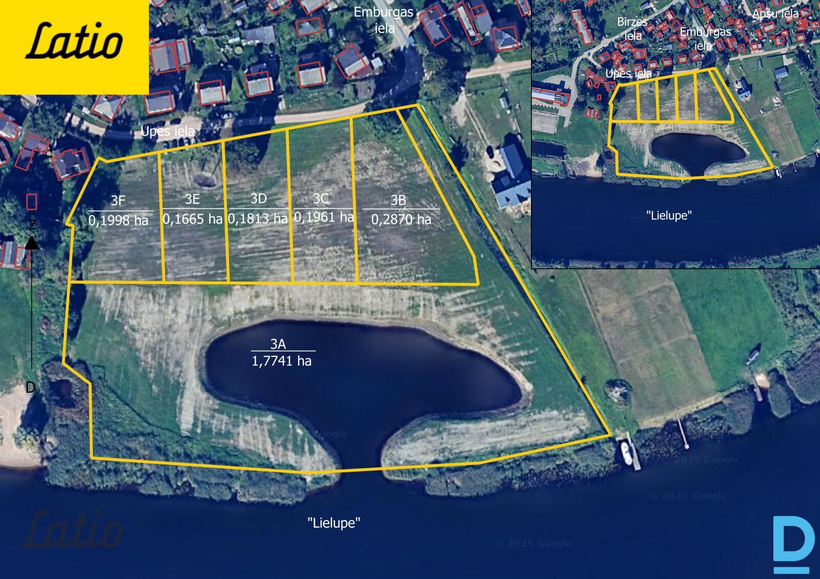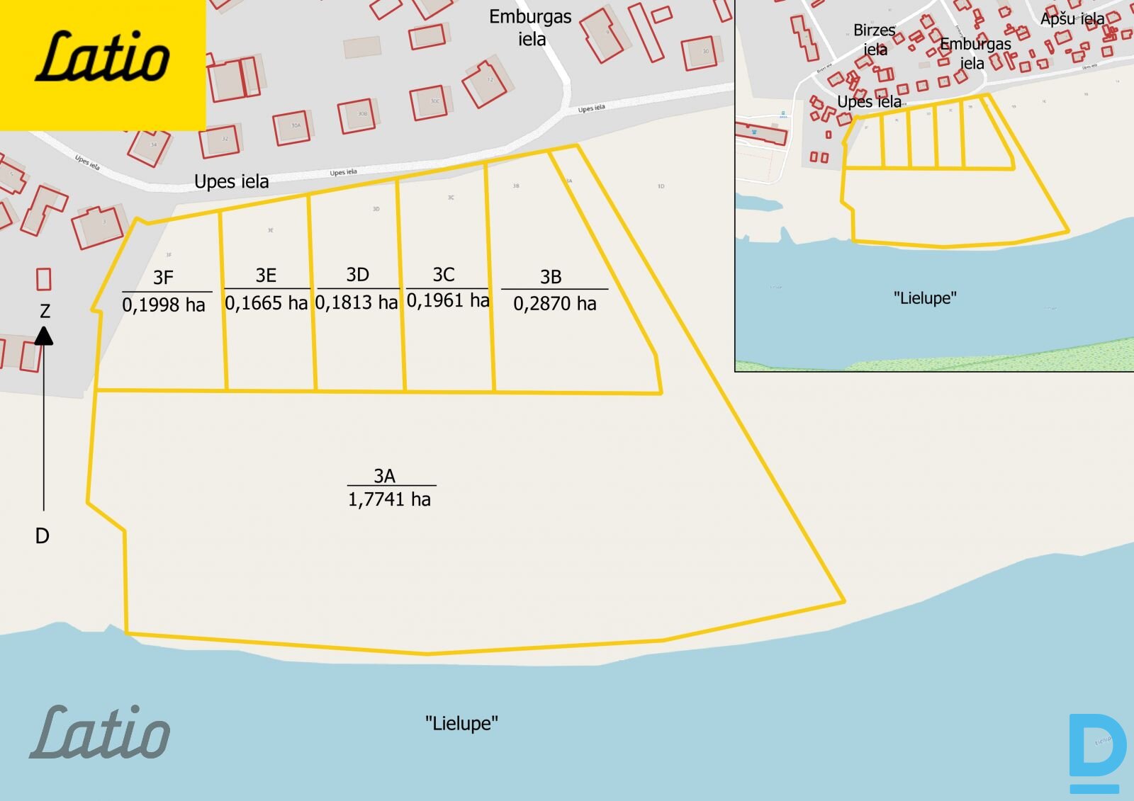 Unikāla iespēja iegādāties apbūves zemes gabalus gleznainā vietā ar tiešu piekļuvi Lielupei, vien 4 km attālumā no Jelgavas centra. Pieejamie zemes gabali: - Upes iela 3B – 2870 m² – 86 000 EUR - Upes iela 3C – 1961 m² – 68 500 EUR - Upes iela 3D – 1813 m² – 63 400 EUR - Upes iela 3E – 1665 m² – 58 200 EUR - Upes iela 3F – rezervēts Katram zemes gabalam klāt nāk 1/5 domājamā daļa no koplietošanas zemes – Upes iela 3A (1.7741 ha), kas paredzēta kopīgai atpūtai pie ūdens, laivu ielaišanai/piestātnes izbūvei. Koplietošanas zemei ir atsevišķa pieeja no Upes ielas, kur paredzēta ērta ūdenstransporta pārvietošana līdz krastam. Inženierkomunikācijas: Blakus zemes gabaliem uz Upes ielas pieejama gāze un centralizētais ūdensvads; Elektrības pieslēguma izveide (3 fāzes, 20A) – provizoriski 1100 EUR + projekta izstrāde. Atrašanās vieta: Privātmāju rajons ar skatu uz Lielupi, Lielupes palienes pļavām un vakaros neaizmirstamiem saulrietiem. - Asfaltēts piebraucamais ceļš; - Autobusa pietura – 250 m; - 2 km līdz dzelzceļa stacijai Cukurfabrika; - 3,3–3,7 km līdz t/c Valdeka, Zemgales ledus hallei, Jelgavas 4. vidusskolai, bērnudārziem un Pasta salai; - 4 km līdz Jelgavas centram. Šī vieta ir ideāla tiem, kas vēlas dzīvot pilsētai tuvumā, bet ik dienu baudīt lauku klusumu un ūdens tuvuma priekšrocības. Sazinies, lai uzzinātu vairāk vai vienotos par īpašuma apskati. |